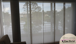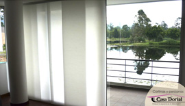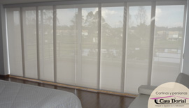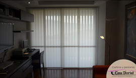 Es un producto minimalista y limpio, especial para puertaventanas y para grandes ventanas de piso a techo. Este sistema está compuesto de paneles verticales, conocidos como telos, los cuales se deslizan horizontalmente en canales paralelos a lo largo de un riel de aluminio. Con el desplazamiento lateral de los telos es posible graduar la apertura y gracias a esto se puede cubrir parcial ó totalmente la ventana.